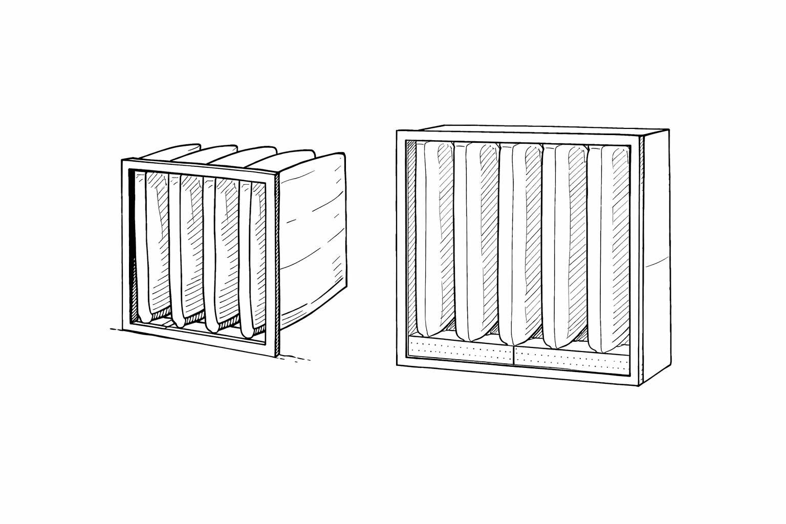 Air flows through multiple filter pockets which trap particulate while distributing airflow evenly to maximise dust holding capacity and service life.