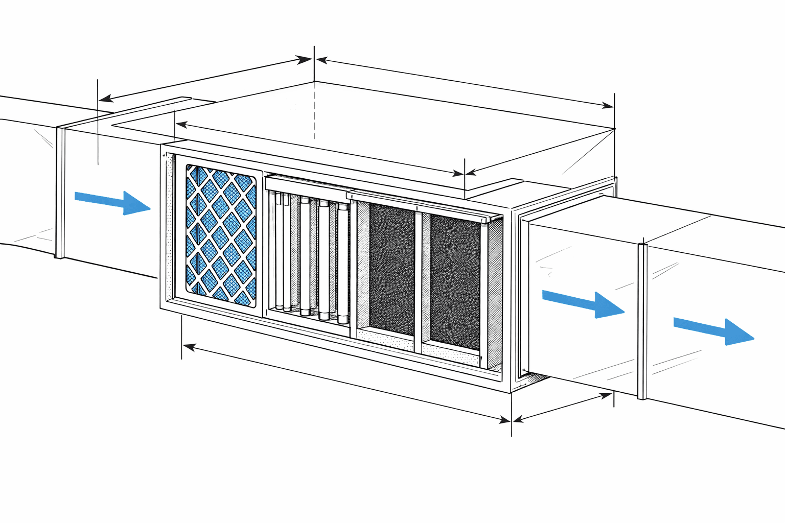 Allows flexible configuration of pre-filters, carbon, HEPA, and other treatment stages.