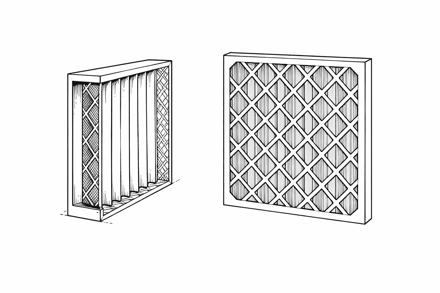Air passes through pleated media which increases surface area, capturing larger particles while maintaining consistent airflow.